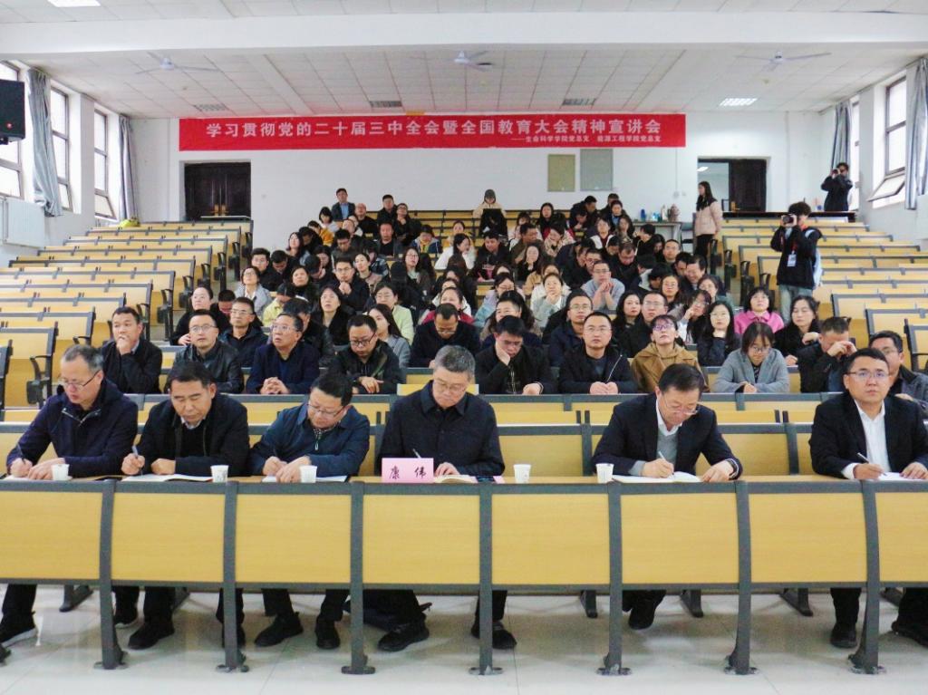 为深入学习贯彻党的二十届三中全会精神,落实全国教育大会精神,助力公司建成特色鲜明的一流应用型大学。11月14日下午,3044永利集团和生命科学公司在逸夫楼305阶梯教室联合开展学习贯彻党的二十届三中全会暨全国教育大会精神宣讲会。宣讲会邀请马克思主义公司刘小红教授做报告,公司党委副书记、董事长康伟出席报告并讲话,公司党总支书记王小平主持报告。