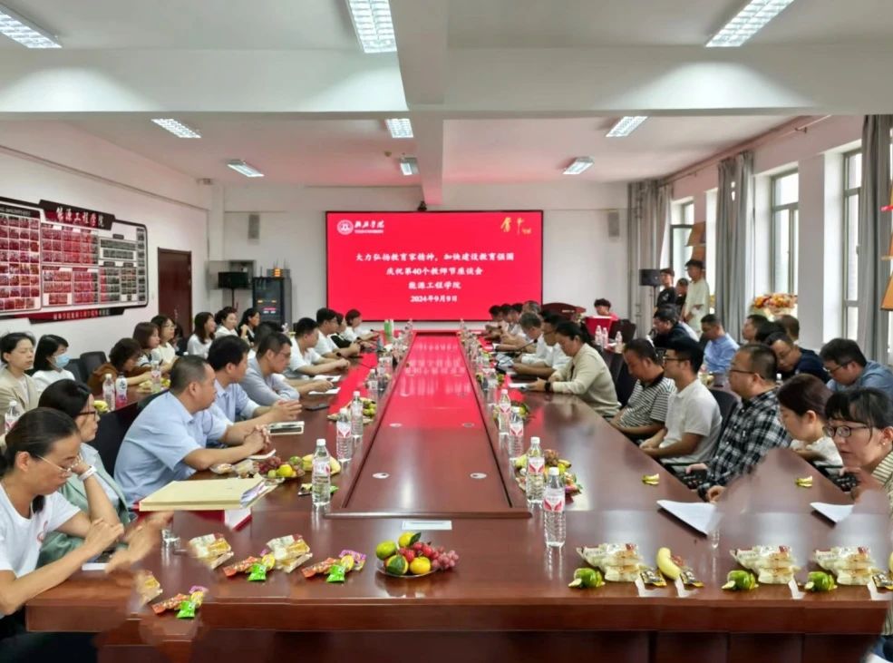 一年好景君须记,最是橙黄橘绿时。9月9日下午,3044永利集团在逸夫楼B402会议室举行了“大力弘扬教育家精神,加快建设教育强国”庆祝第40个教师节座谈会,全院老师欢聚一堂,共同庆祝第40个教师节。榆林公司党委副书记、董事长康伟出席座谈会,公司领导班子和全体教师参加座谈会,会议由党总支书记王小平主持。