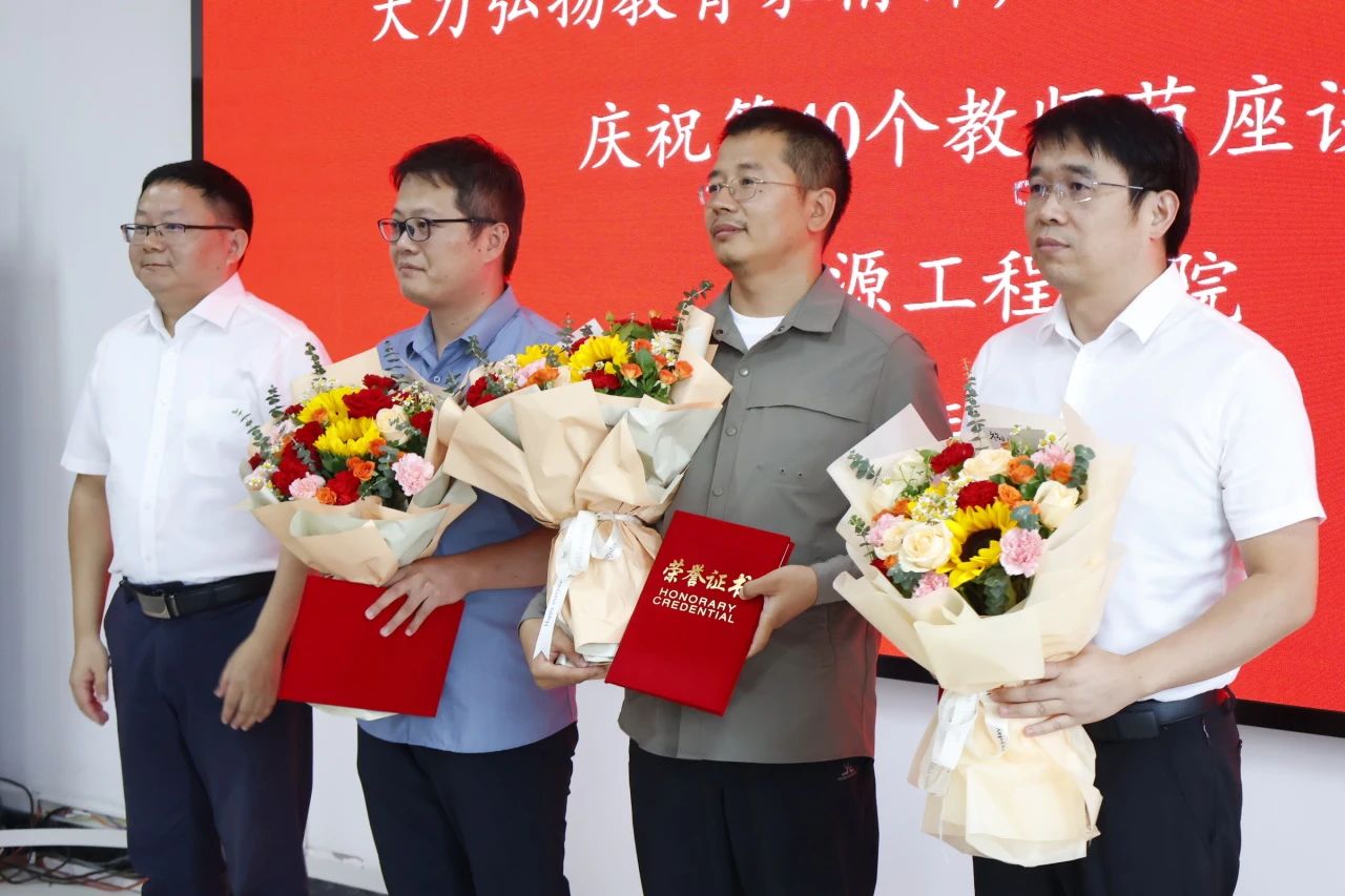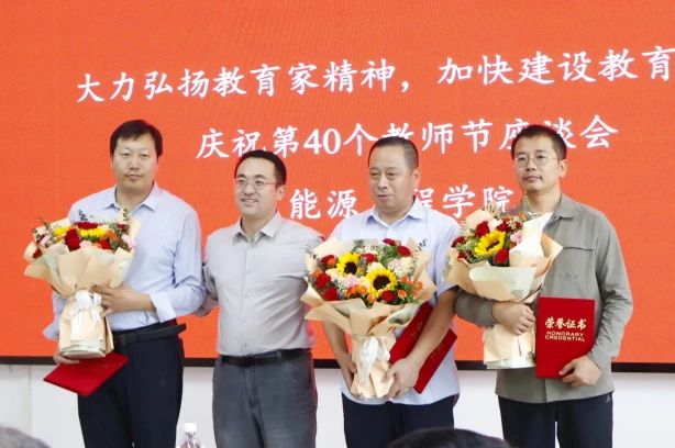 会上,王小平宣读了表彰文件,分别表彰了2024年度获批国家自然科学基金的郭争荣、任立庆、孙志勇,在教改论文、教材编撰、省级课程方面表现突出的周丹丹、李艳、郭敏,在科研方面表现突出的任立庆、王金东、商铁林,在员工就业、思想政治教育工作中做了大量工作的崔晓波、张裕,学科竞赛突出代表刘奋军,公司文体活动先进分子冯宏伟,在公司日常工作中任劳任怨、勇于担当的曹锦伟、杨宏斌等15位老师,他们为公司的发展做出了积极的贡献。经理王进仕、常务副经理王憨鹰、教学副经理孙志勇、科研副经理胡广涛、党总支副书记刘玉娥分别为以上获奖老师颁发荣誉证书并合影留念。王进仕经理还为离退教师丁芝琴献花送上荣休祝福,并颁发荣休证书。