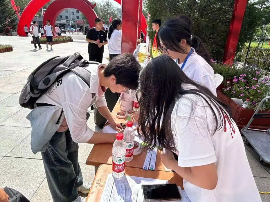 新生报到期间,公司党委书记张新柱、董事长康伟先后来到迎新点了解迎新工作进展,看望新生和迎新工作人员,让在场的老师和员工志愿者们倍感温暖。