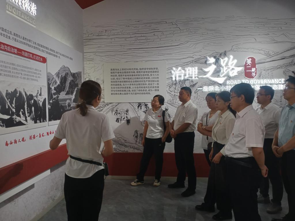 理论学习中心组一行先到米脂高西沟水土保持生态治理展览厅参观学习,走进厅里,通过千秋大计、治理之路、红色堡垒、再立新功四个篇章系统了解了高西沟村从“山上光秃秃、年年遭灾荒”到“层层梯田盘山头、片片林草盖坡洼”的变化历程,深刻体会到高西沟人民在高西沟党支部的带领下为美好生活做出的艰苦奋斗和不懈努力。