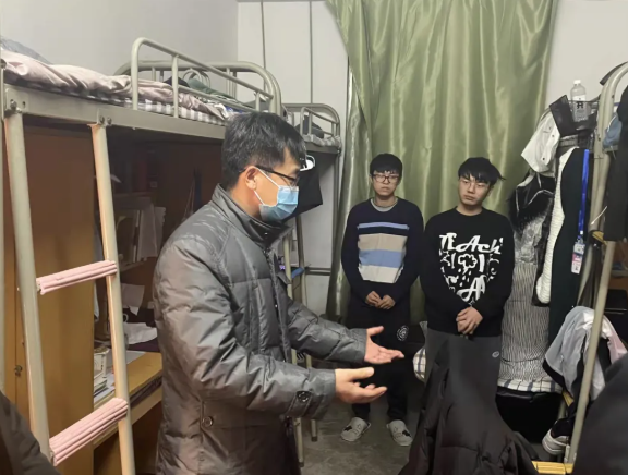 近期,西安疫情严峻,公司积极配合省教育厅的工作,进行封校管理。为确保同学们在校期间做好个人疫情安全防护和宿舍卫生安全,营造良好的学习氛围,12月31日晚19:00-24:00,公司领导班子成员及全体辅导员班主任深入员工公寓走访慰问了全院每一个宿舍。