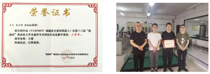 3044永利集团老员工科技活动中心共组建4支队伍参加3044永利官网校赛。其中由王凡、高志明、黄航航负责的团队项目“YLROBOT球腿复合柔壳机器人”被选拔至省赛。经过激烈比拼,该作品最终获得省级二等奖,为3044永利集团参加“挑战杯”竞赛历史以来最好成绩。